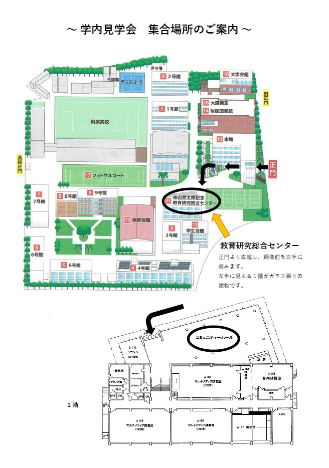集合時間:午前10:15(学内見学に出発した後は合流が難しいため、時間厳守でお願いいたします)